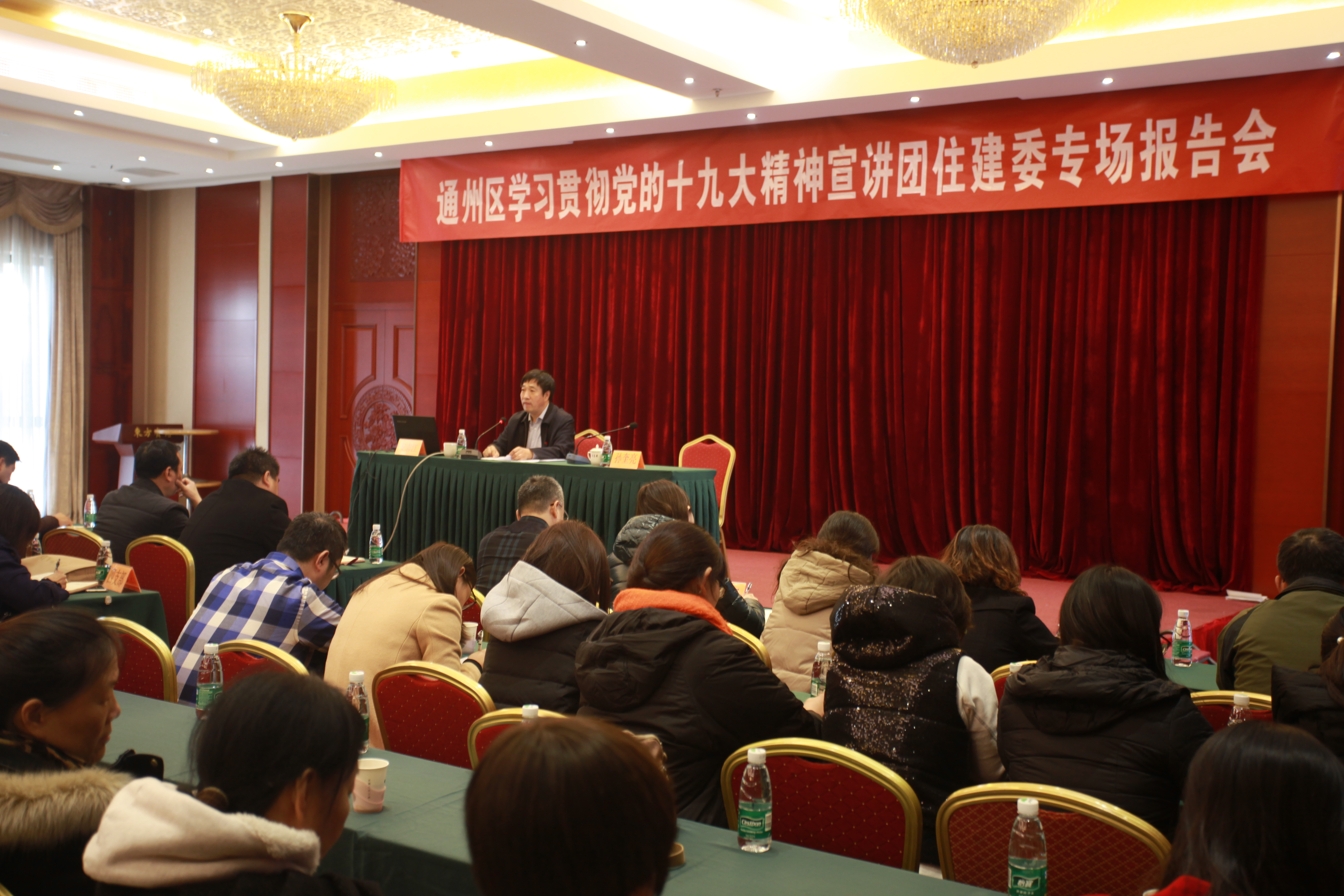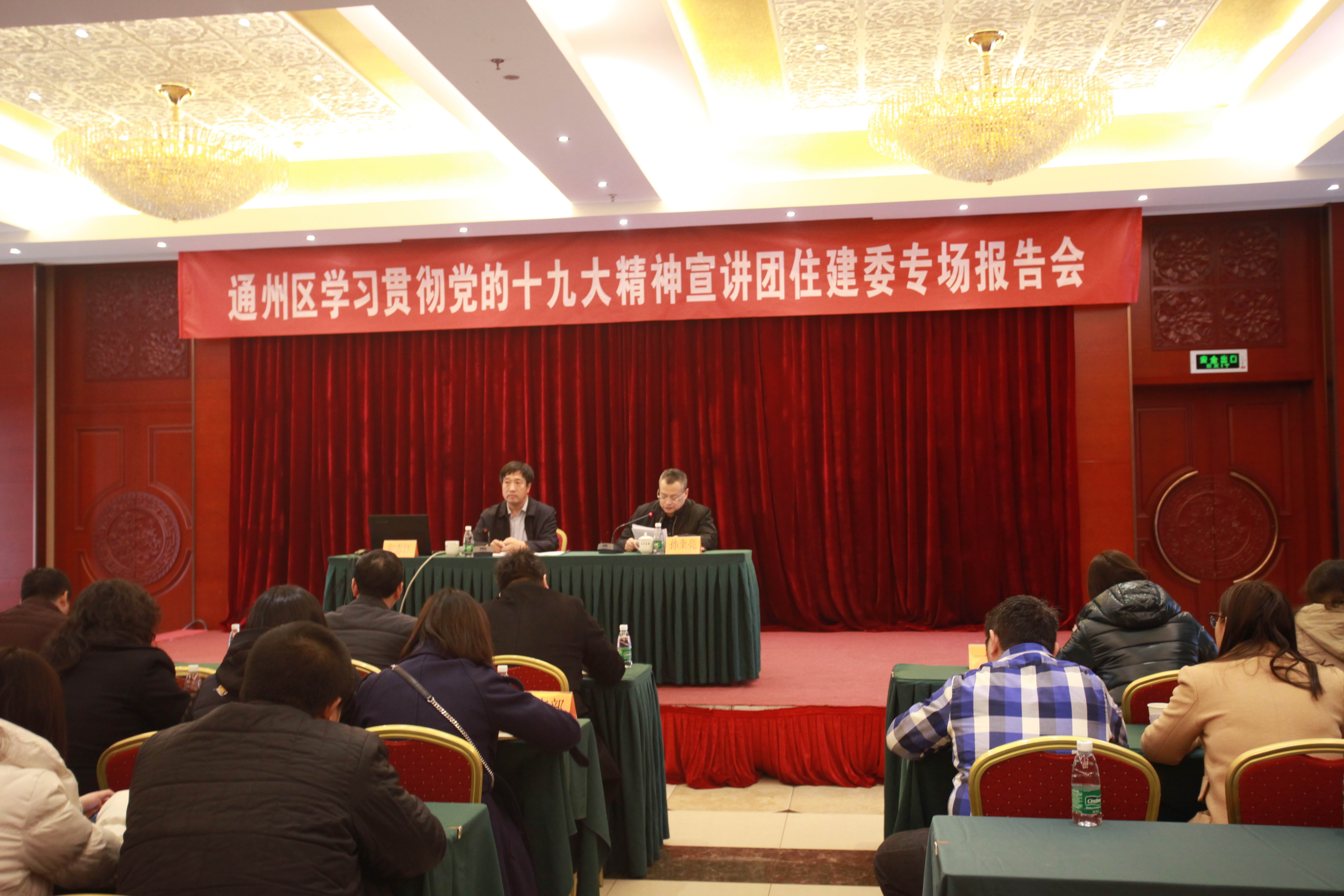 通州区住建委举办学习贯彻党的十九大精神专场报告会 为了深入学习贯彻党的十九大精神,11月15日,通州区学习贯彻党的十九大精神宣讲团成员区委党校党委副书记、常务副校长安志江同志到住建委进行宣讲,区住建委党委书记、主任孙奎亮主持会议,住建委班子成员、271名党员、19名入党积极分子参加报告会。 安志江同志的报告紧紧围绕十九大精神和习近平新时代中国特色社会主义思想,政治站位高,主题鲜明,内容丰富,论述精辟,全面、准确、透彻地宣讲了党的十九大精神,又紧密结合城市副中心建设的实际,住建委广大党员干部很受启发和教育。 区住建委主任孙奎亮同志要求全委党员干部一定要更加紧密地团结在以习近平同志为核心的党中央周围,高举中国特色社会主义伟大旗帜,以习近平新时代中国特色社会主义思想为指引,锐意进取,埋头苦干,为建设国际一流和谐宜居之都示范区、新型城镇化示范区、京津冀区域协同发展示范区,全面推进北京城市副中心建设而努力奋斗。